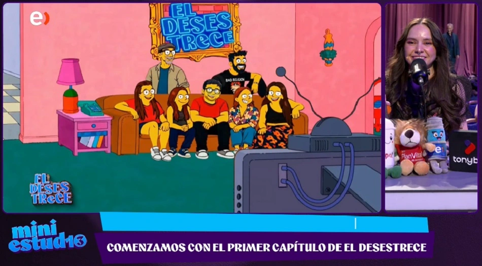 En medio del recorrido por distintos programas de Canal 13 para dar con el estudio de “El Desestrece”, Cynthia Gallardo, encargada del react, llegó a un set muy particular. Al entrar, los integrantes del espacio aparecieron convertidos en caricaturas al estilo de «Los Simpsons».